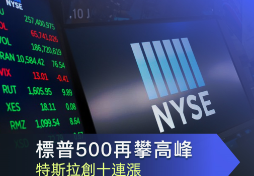 特斯拉收高3.71%至每股262.33美元,连续十天上涨,且10日累涨近44%,创一年来最长连涨纪录。